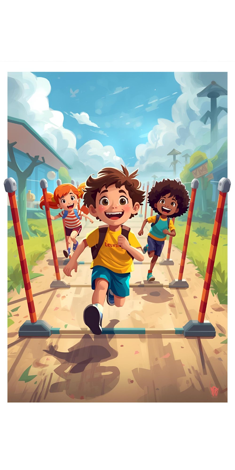 Set up cones, hula hoops, or pool noodles to create a playful course. Kids can crawl, jump, and run their way through for added excitement.
