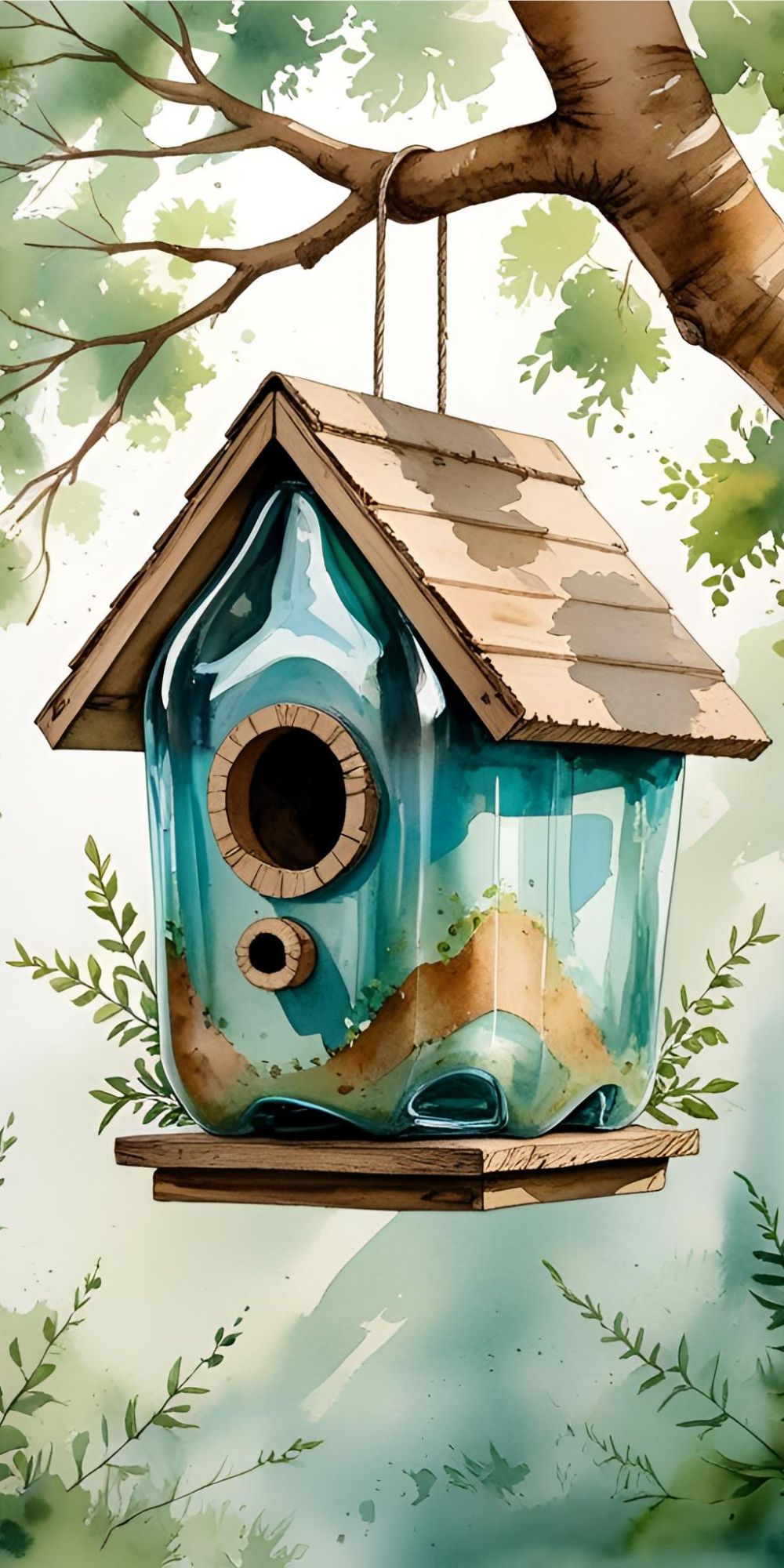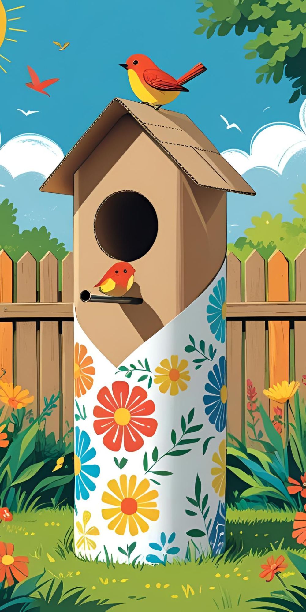 Kids can decorate a cleaned milk carton with paint or paper, cut an entrance hole, and hang it outside with string.