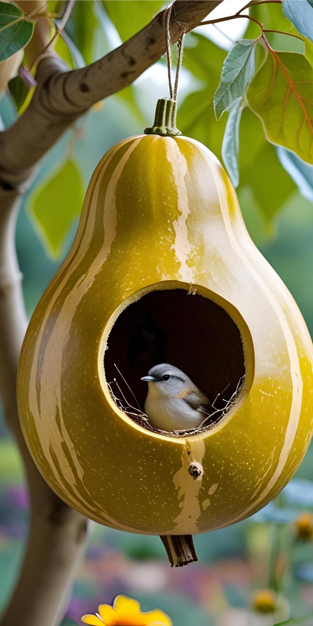 Hollow out a dried gourd, paint it, and hang it for a unique, nature-inspired bird home.