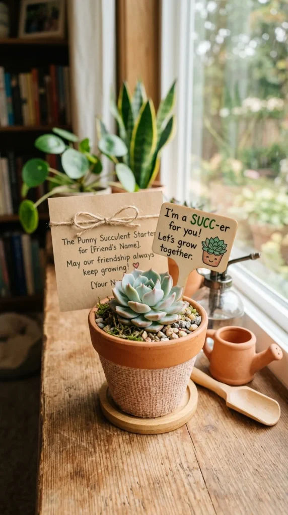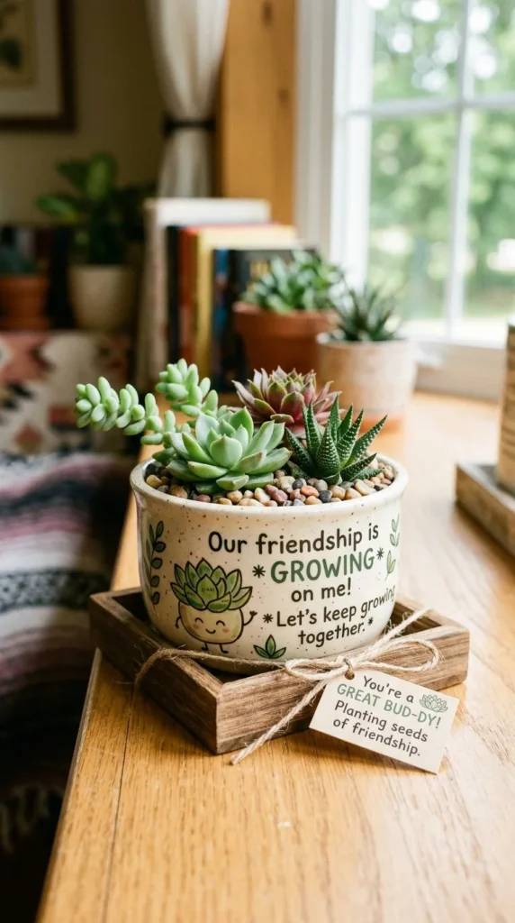 A succulent starter is a gift that literally grows over time, symbolizing the enduring and healthy nature of your long-term friendship with someone.