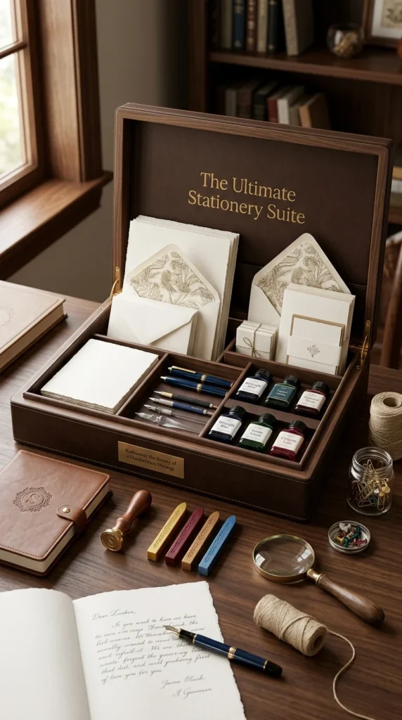 This stationery kit is a sophisticated example of how paper products can be transformed into a valuable and useful birthday gift for friends.