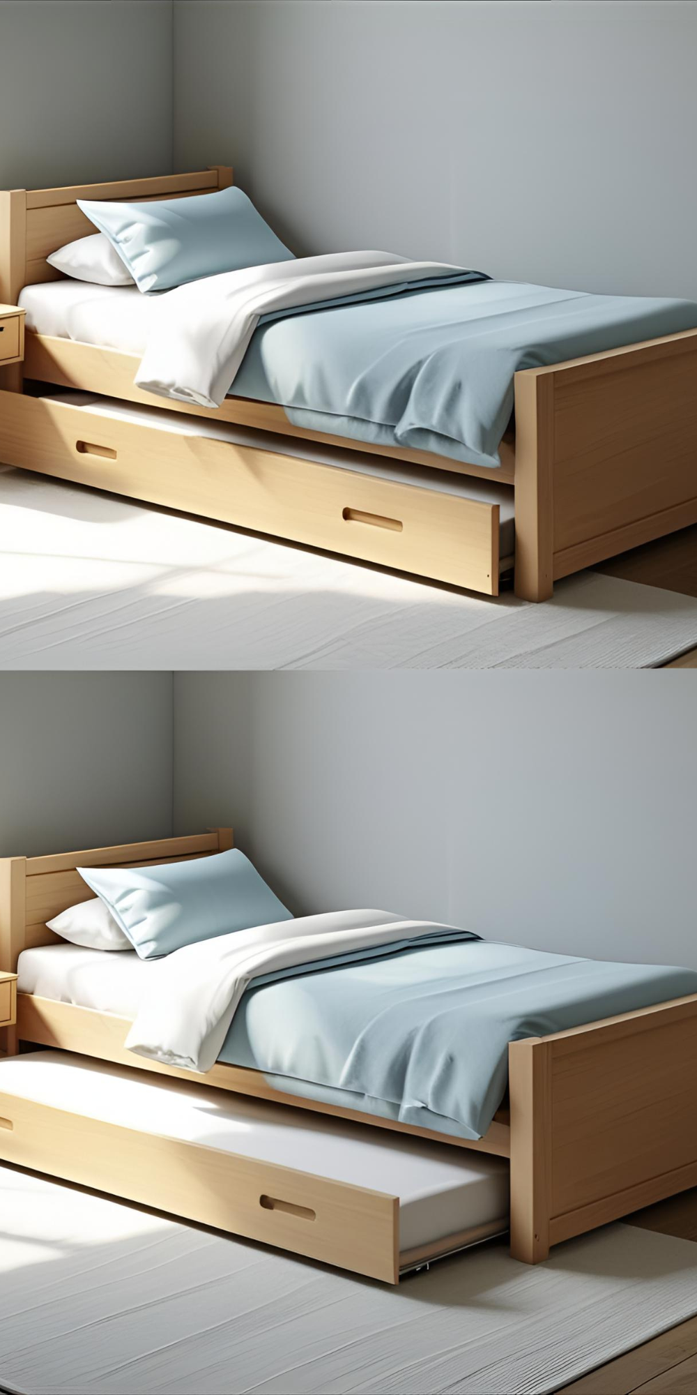 Trundle beds tuck neatly under the main bed and pull out for sleepovers.