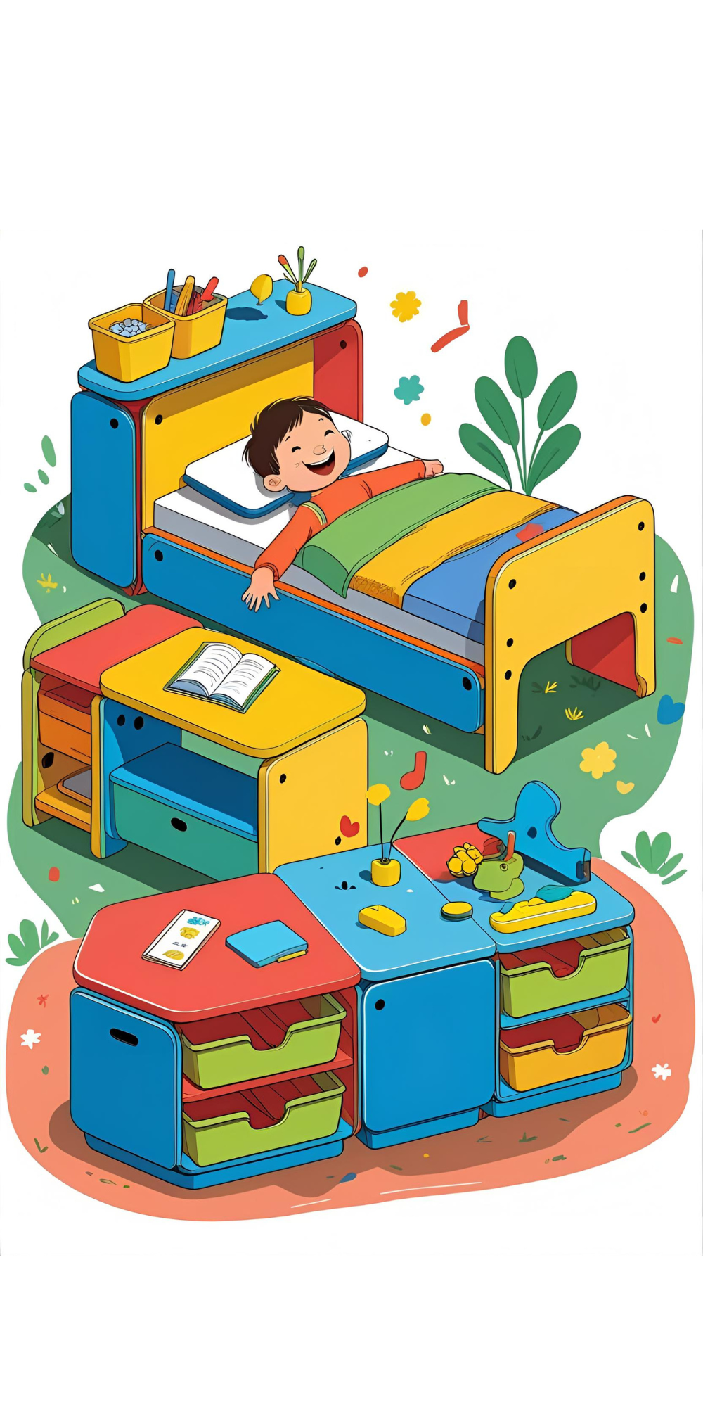 This layout is perfect for school-aged children who need a dedicated workspace without crowding the room.