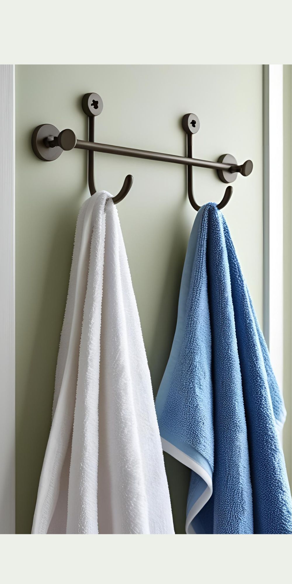 Hooks are easier for kids than towel bars. Place them low enough so children can hang towels themselves.