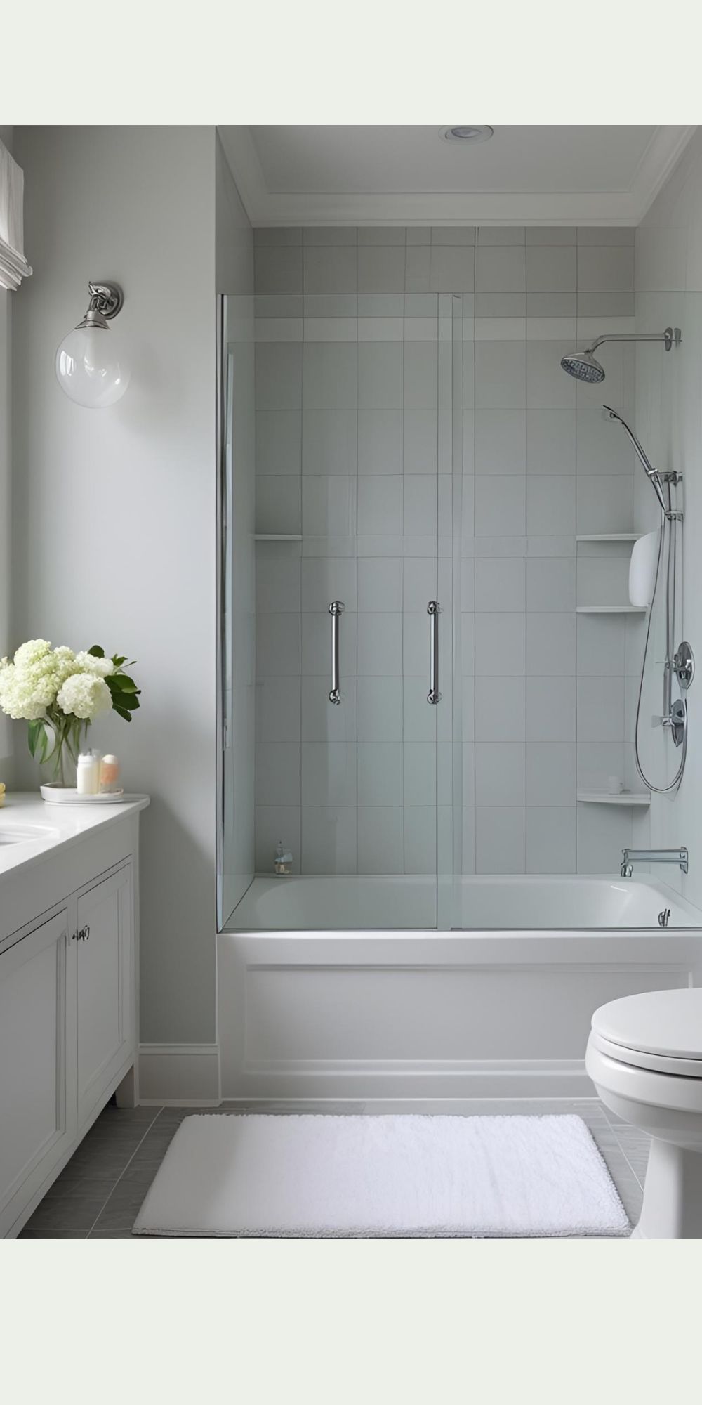 Neutral colors, double sinks, and organized storage work best for shared spaces.