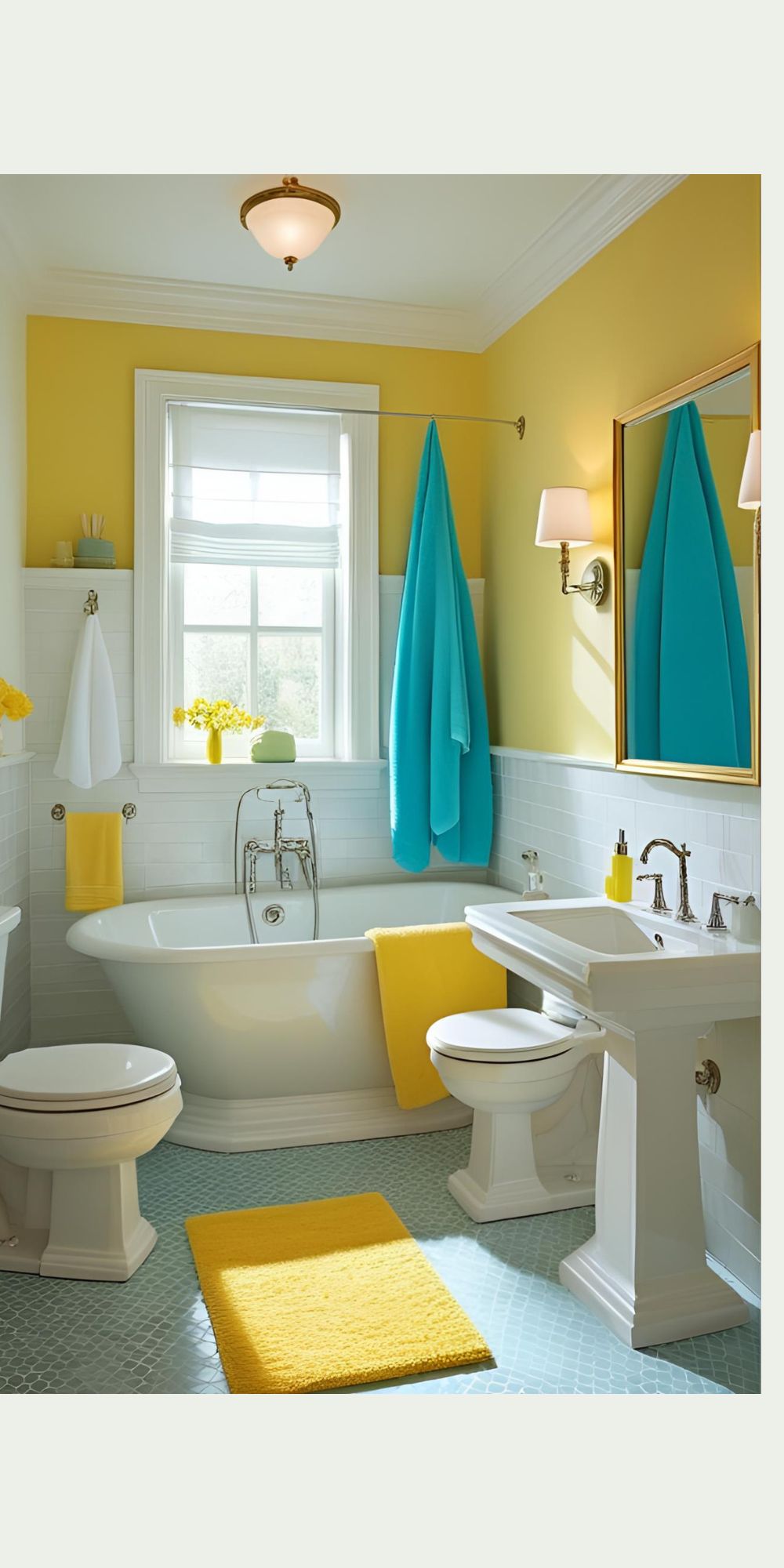 Small bathrooms feel bigger with a fresh coat of light paint. Adding pops of bright colors—like sunny yellow, aqua blue, or mint green—on accessories or towels makes the space cheerful without overwhelming it.
