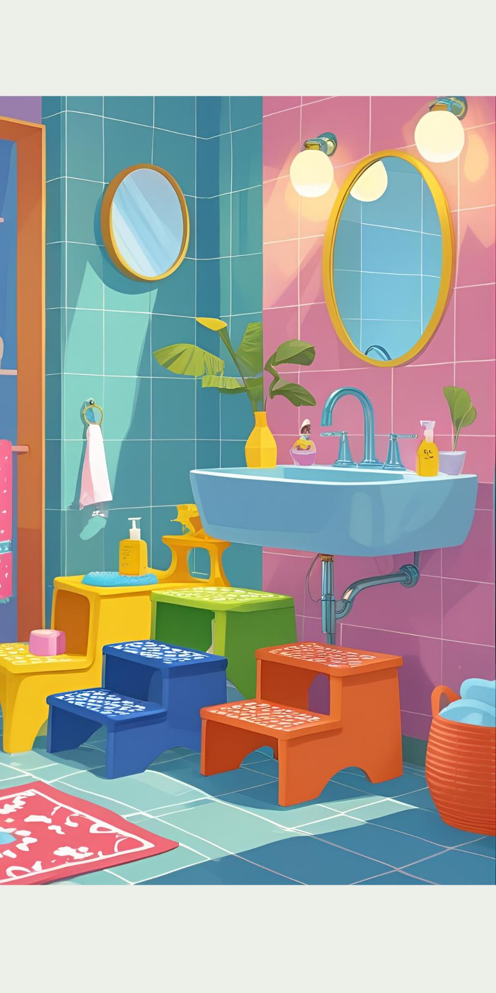 Colorful stools help kids reach the sink safely while adding a fun pop of décor.