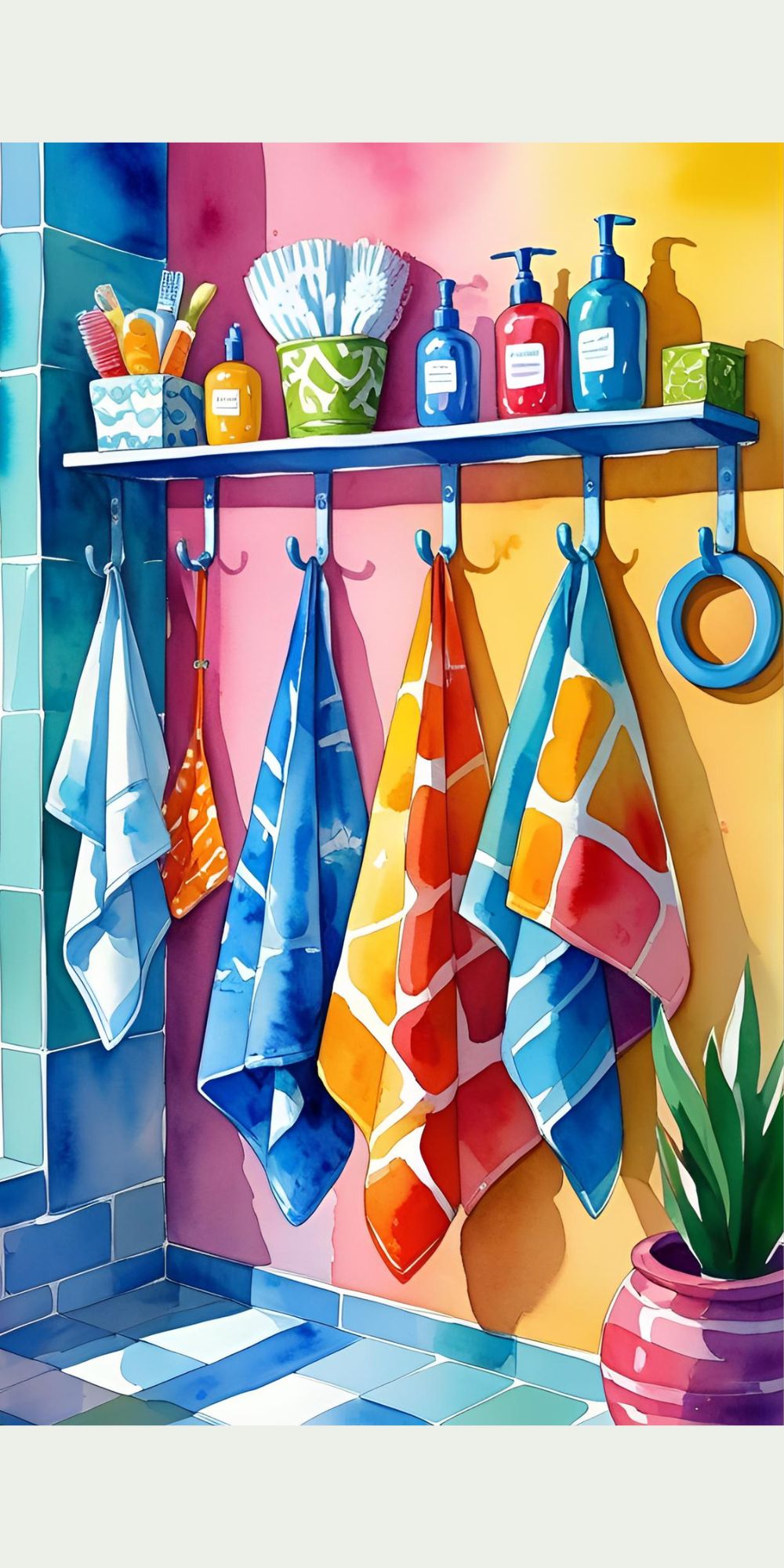 Install hooks at kid height so children can hang their towels easily.
