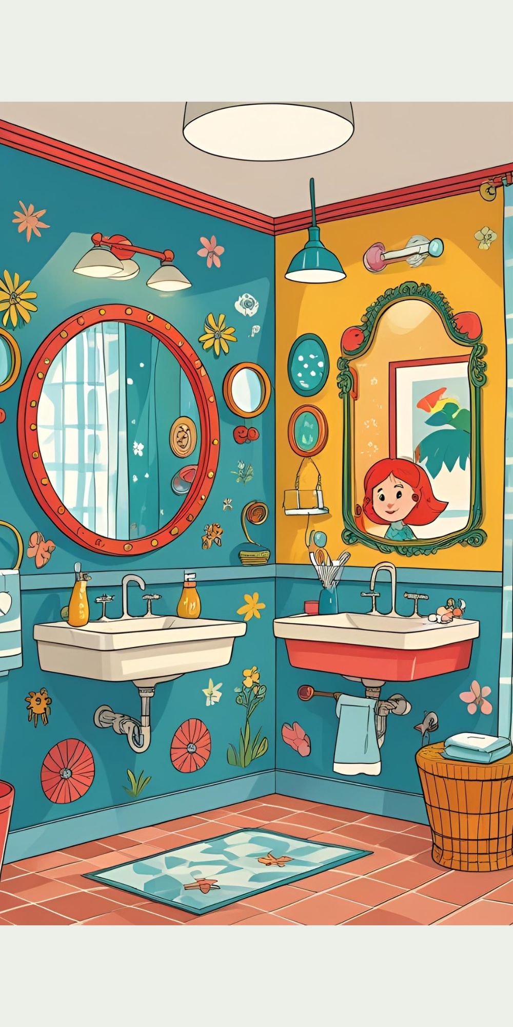 Round, themed, or brightly framed mirrors make brushing teeth and washing up more enjoyable.