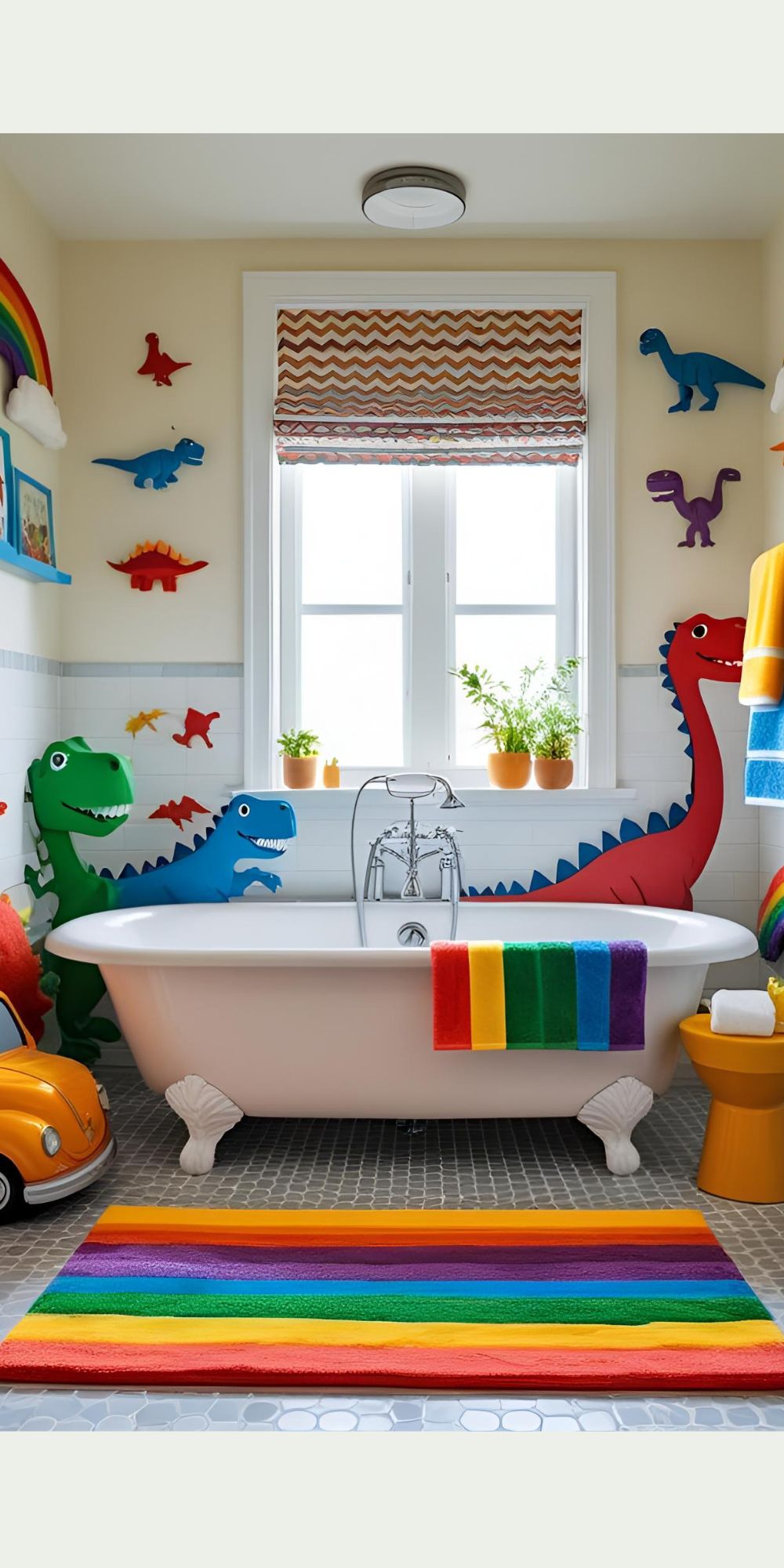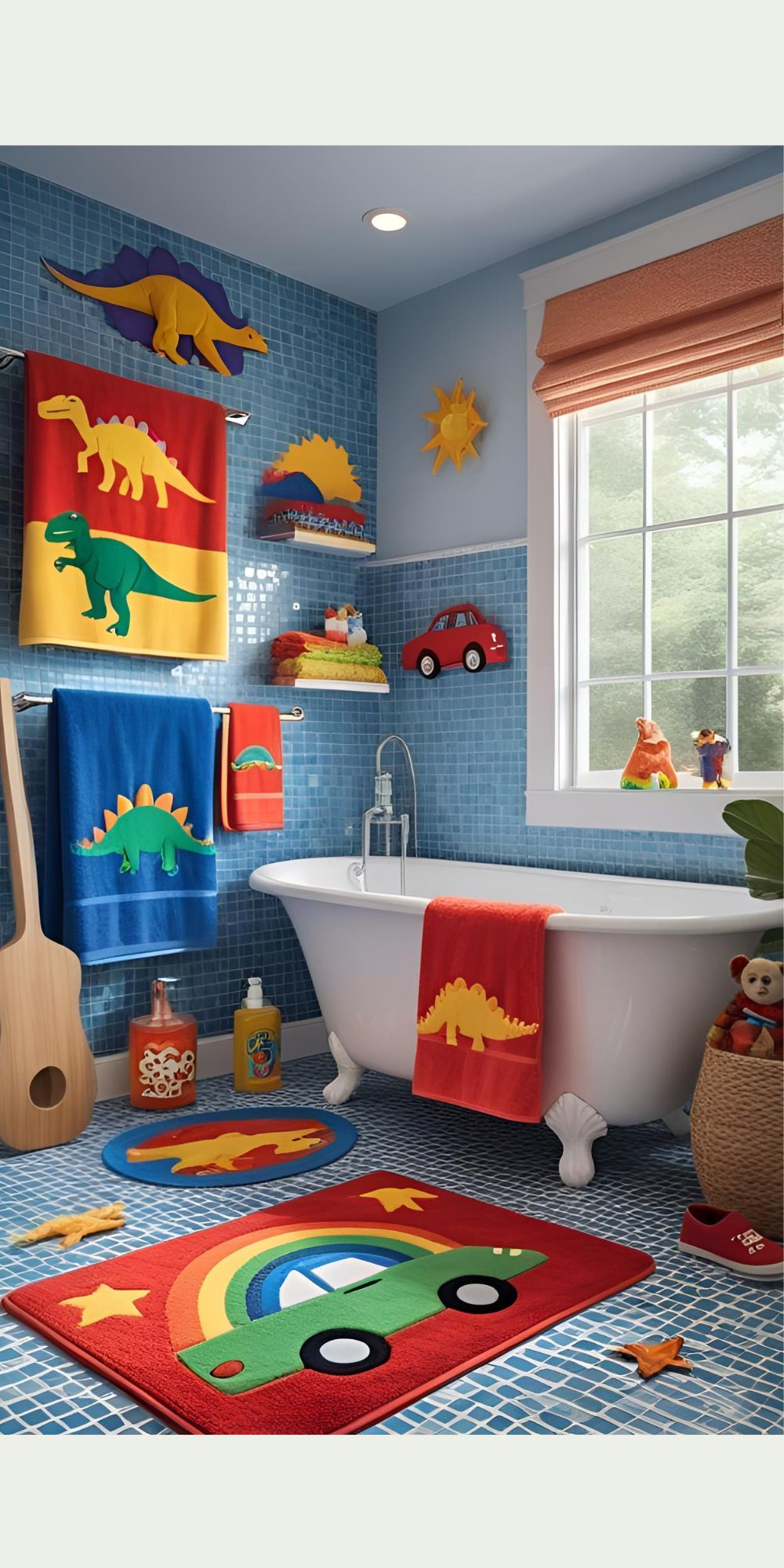 Swap in dinosaur, car, or rainbow towels and rugs for easy, budget-friendly updates.