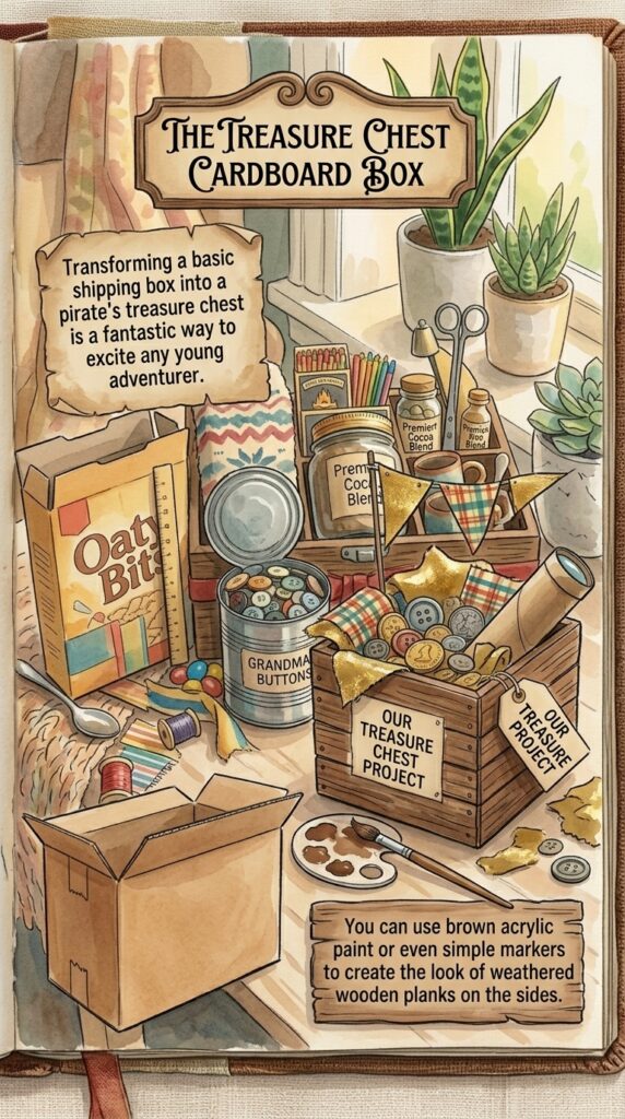 Transforming a basic shipping box into a pirate’s treasure chest is a fantastic way to excite any young adventurer.