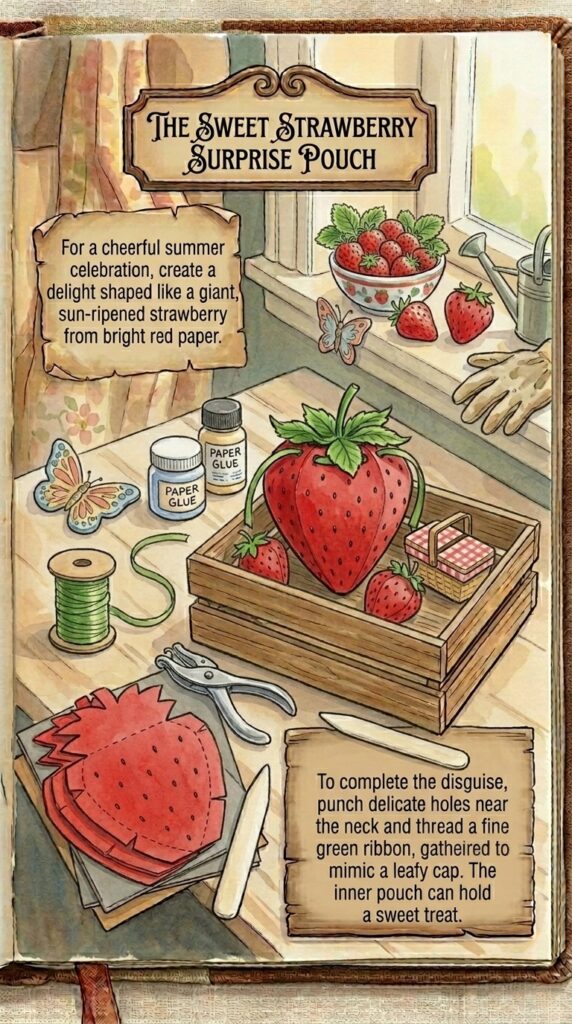 For a summer birthday, nothing beats a gift box shaped like a giant, juicy strawberry made from bright red cardstock.