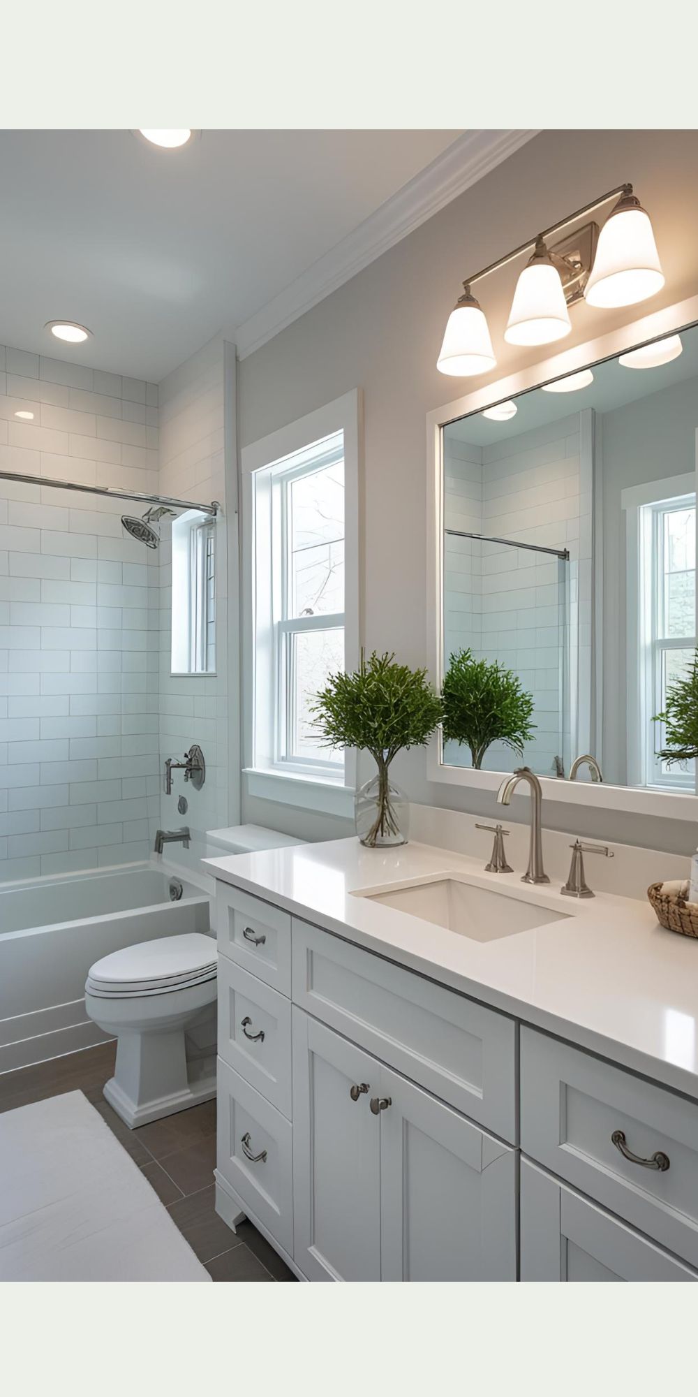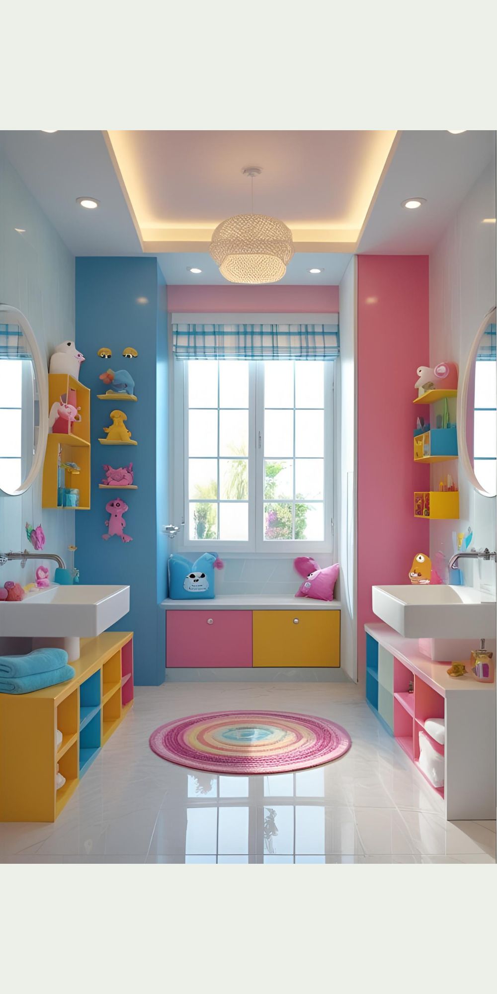 Good lighting above mirrors ensures a fresh, functional, and kid-friendly bathroom.
