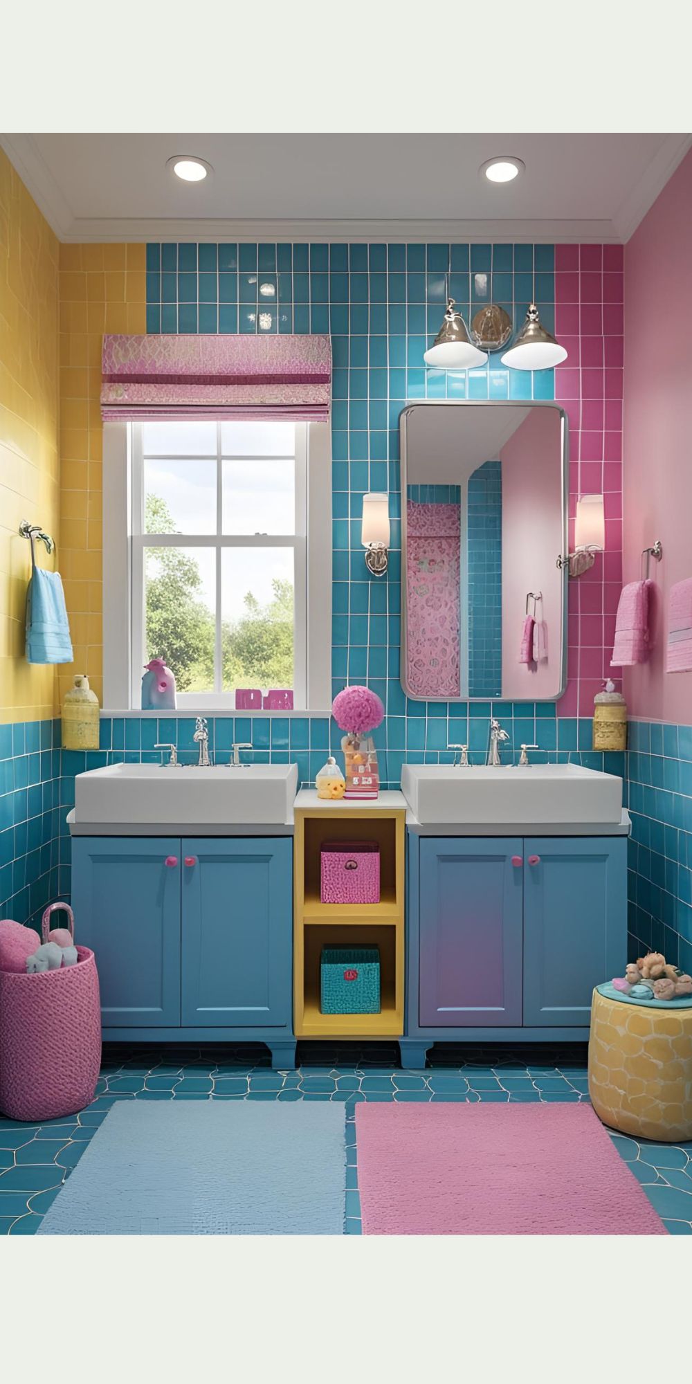 Vinyl or slip-resistant tiles are practical and safe for kids’ shared bathrooms.