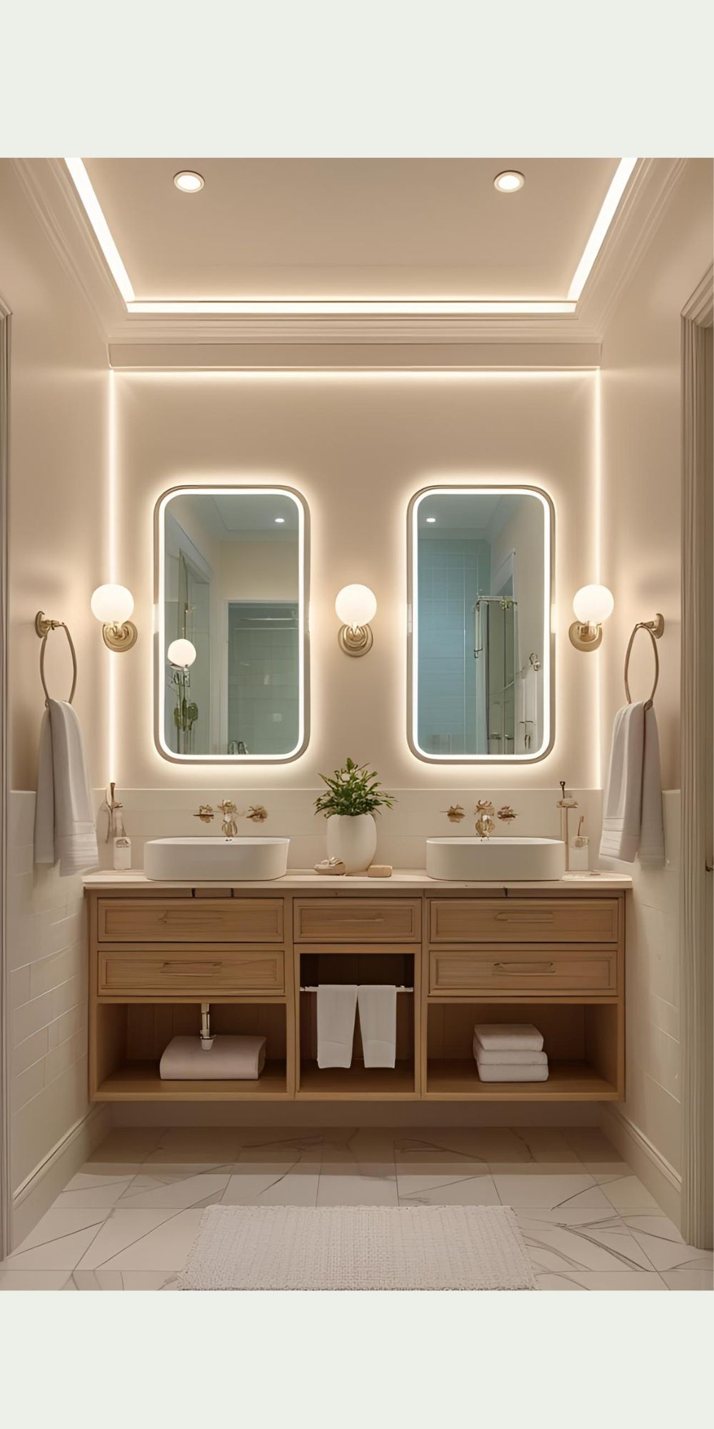 A two-sink vanity helps prevent morning rush conflicts and keeps routines smooth.