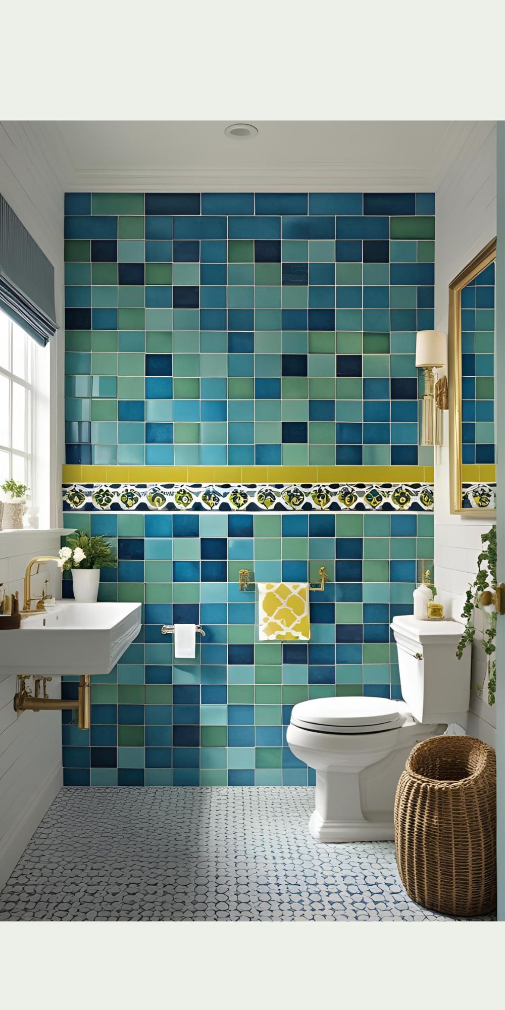 Use colorful tile strips in blues, greens, or yellows for playful detail.