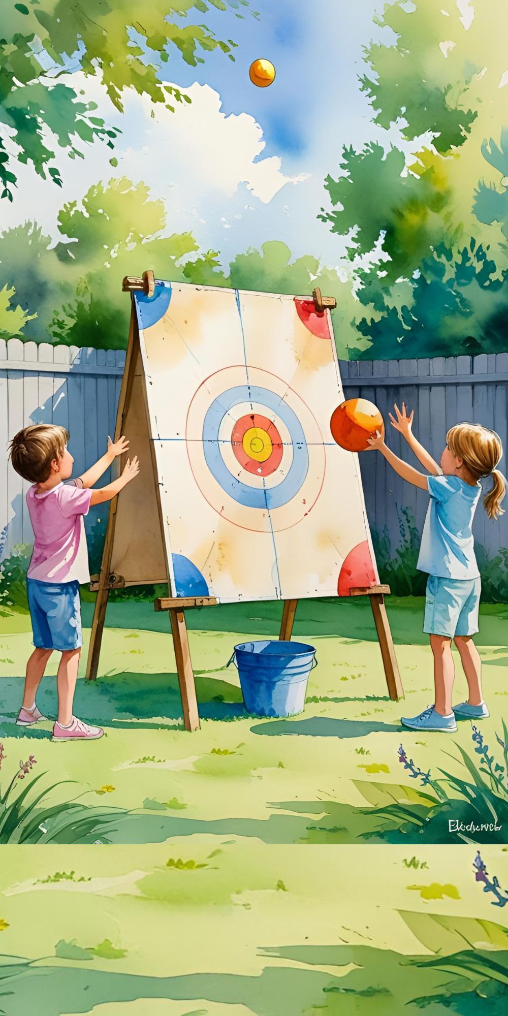 Set up a board or bucket targets and let kids aim for points — great for coordination and friendly competition.