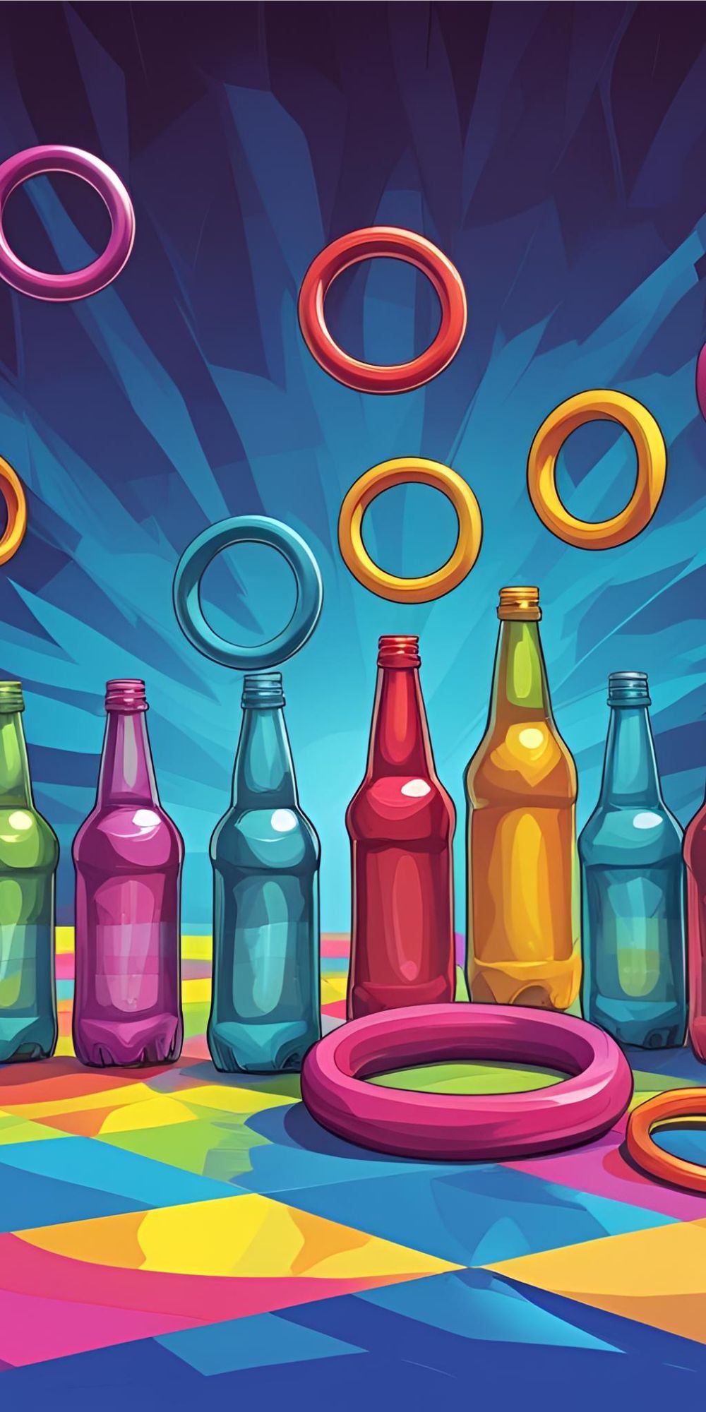 Use bottles and rings (or hoops) for a fun throwing game that develops aim and patience.