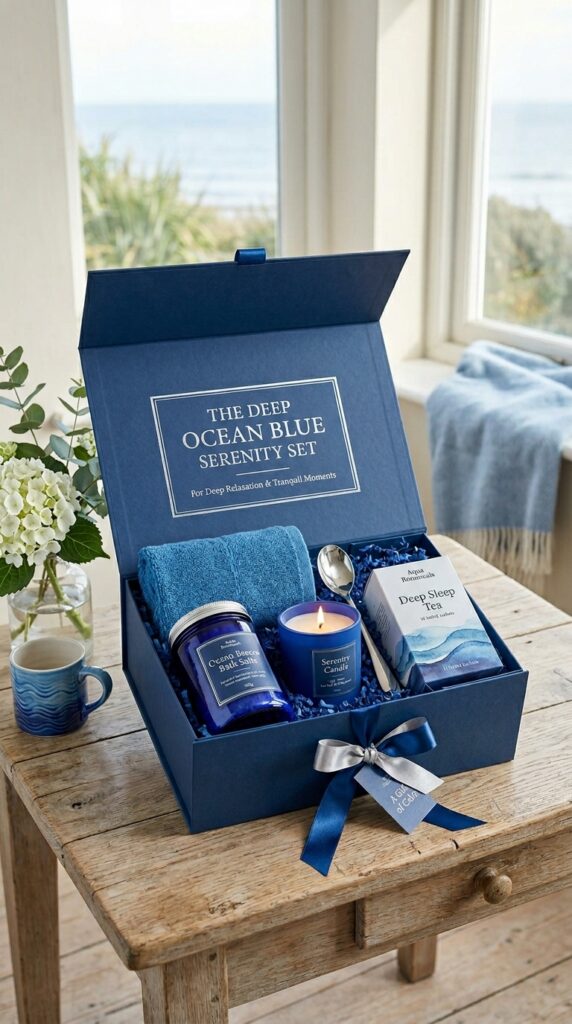 For a gift that feels like a cool breeze on a warm day, a blue-themed box is the perfect way to promote a sense of deep relaxation.