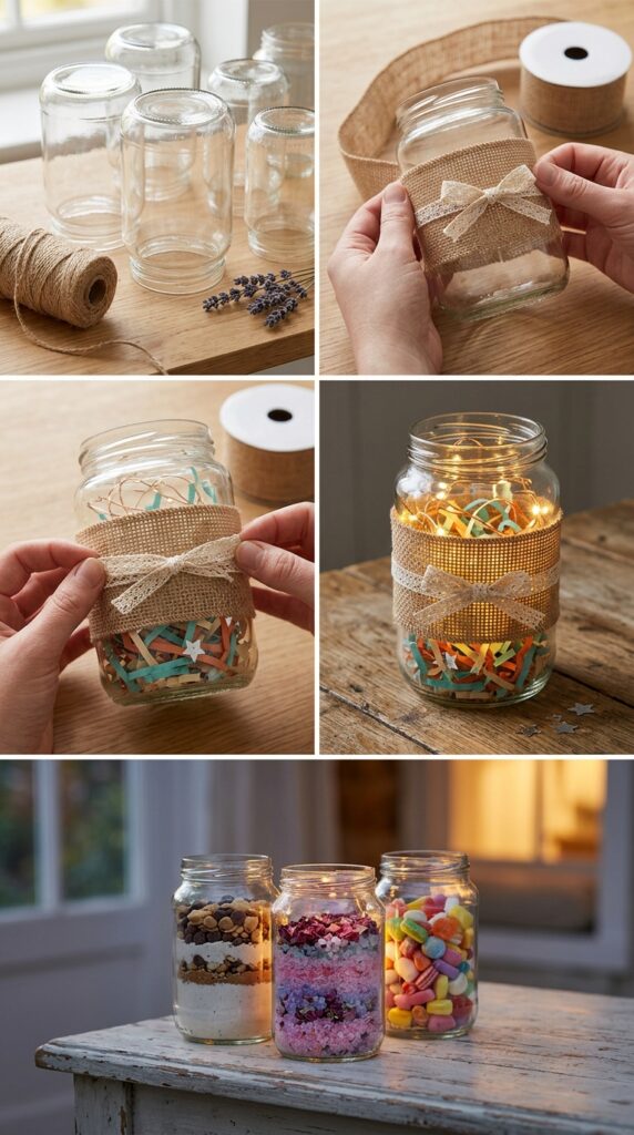 This idea is perfect for gifting layered baking mixes, bath salts, or even a collection of colorful candies for a sweet treat.