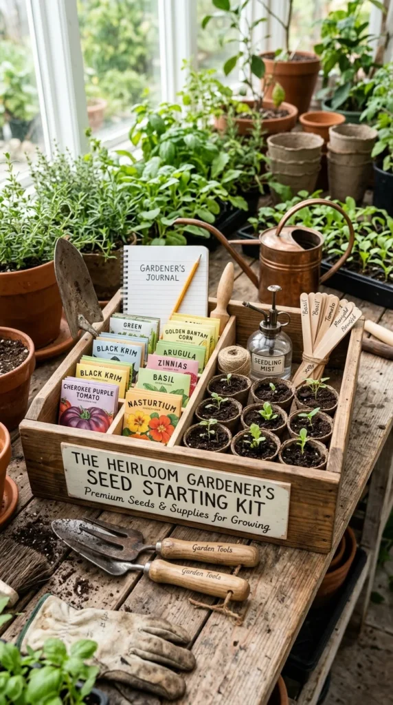 You can help a green-thumbed friend prepare for the next growing season by assembling a box filled with high-quality heirloom seeds and starting supplies.