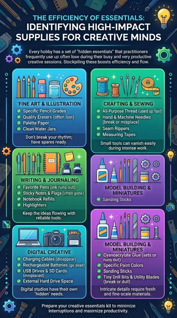 Every hobby has a set of “hidden essentials” that practitioners frequently use up or often lose during their busy and very productive creative sessions.